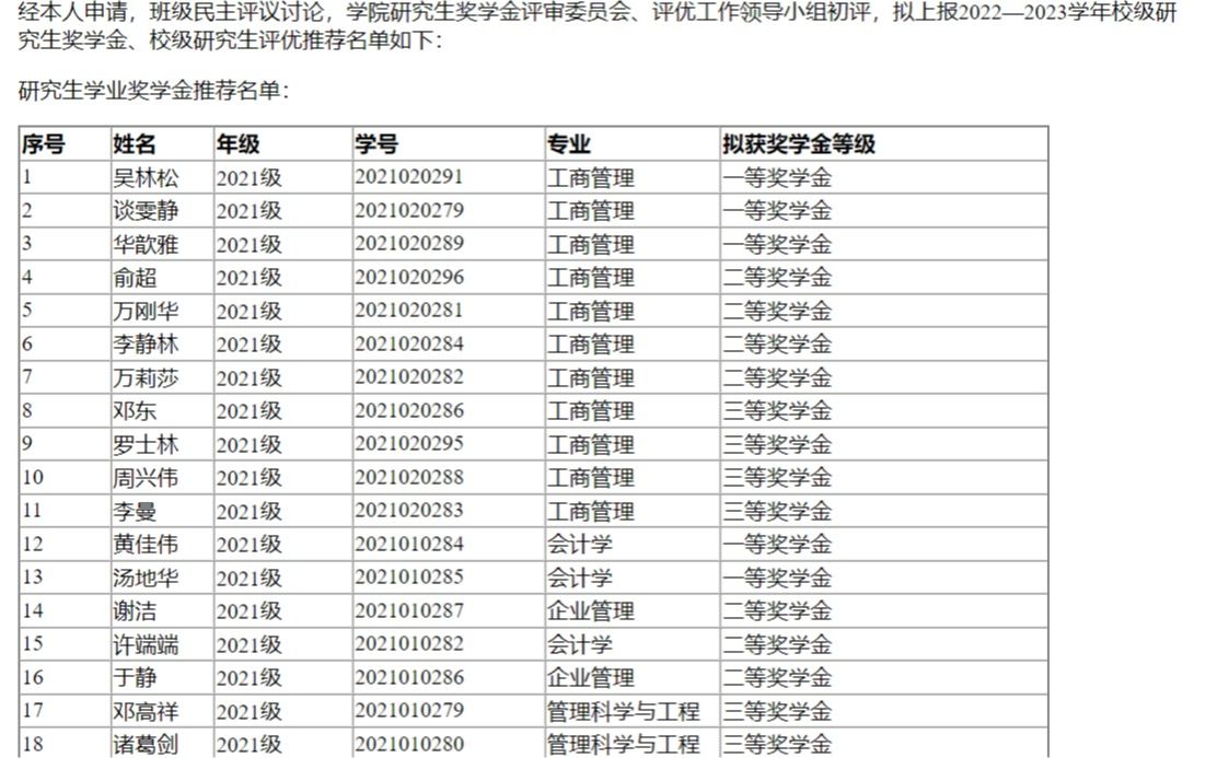 经本人申请,班级民主评议讨论,学院研究生奖学金评审委员会、评优工作领导小组初评,拟上报2022—2023学年校级研究生奖学金...