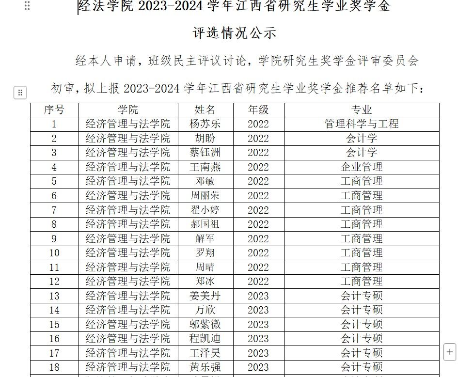 经法学院2023-2024 学年江西省研究生学业奖学金评选情况公示.docx