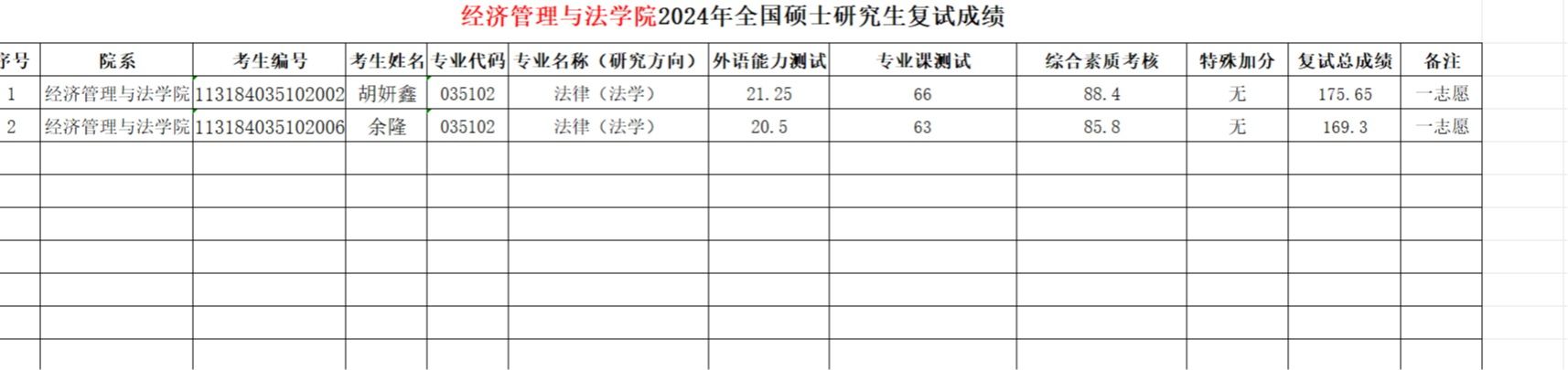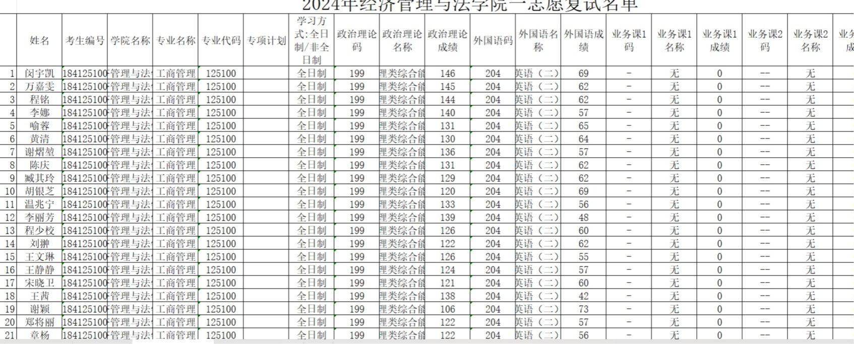 复试成绩公布 法律(法学)(全日制第一志愿).xlsx 复试成绩公布 工商管理(非全日制第一志愿).xlsx 复试成绩公布 工商管...
