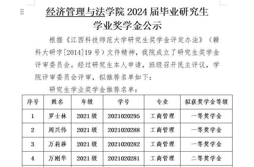 15VIP太阳集团2024届毕业研究生学业奖学金公示.docx