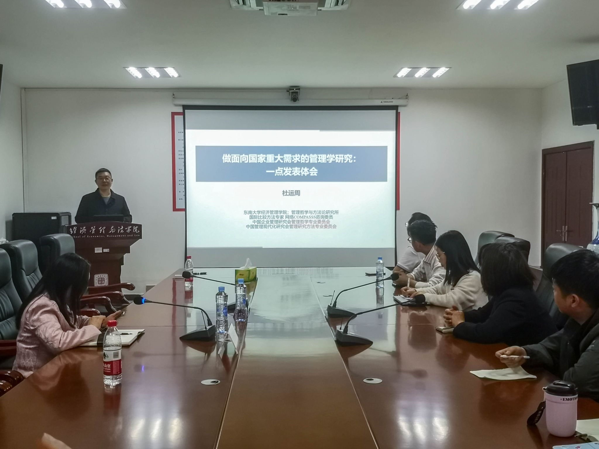4月12日下午,东南大学管理哲学与方法论研究所所长杜运周教授应邀来校作题为“从哲学出发,创新方法论研究复杂性管理问题”的...